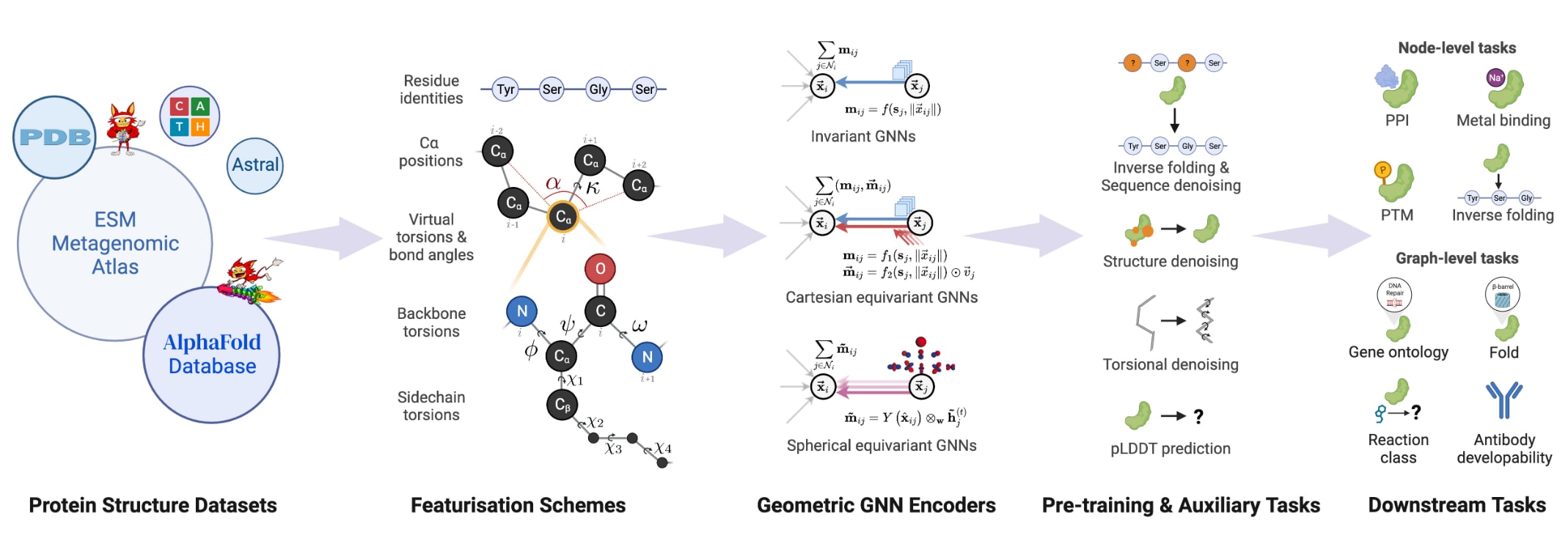 图1:ProteinWorkshop总体示意图。 该框架是一个综合性的基准套件,用于在大规模蛋白质结构数据上系统评估几何图神经网络的预训练策略及其结构表示学习能力。
