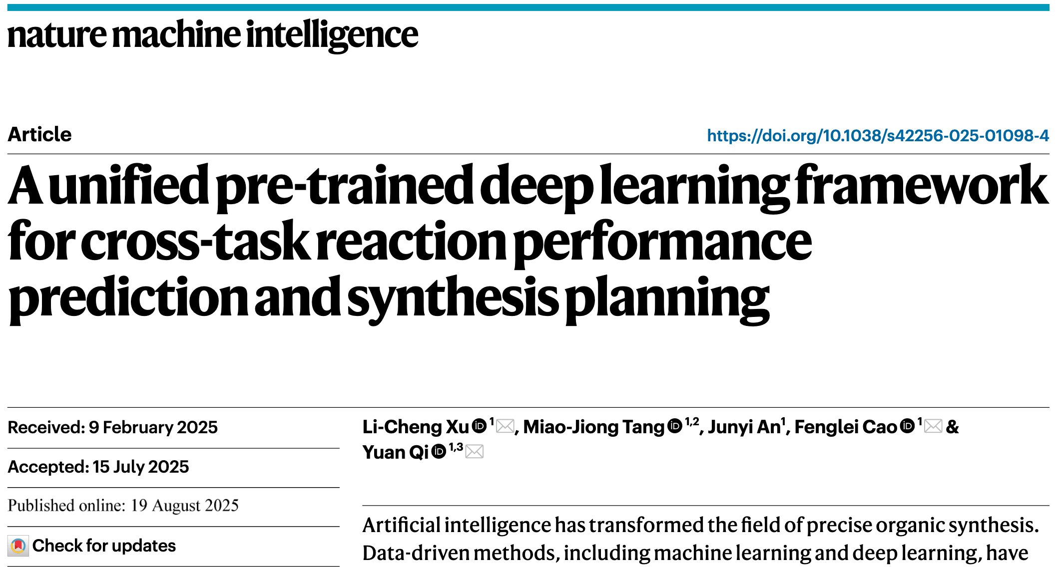 NMI 2025 | RXNGraphormer: 用于跨任务的反应性能预测与合成路径规划的统一预训练深度学习框架