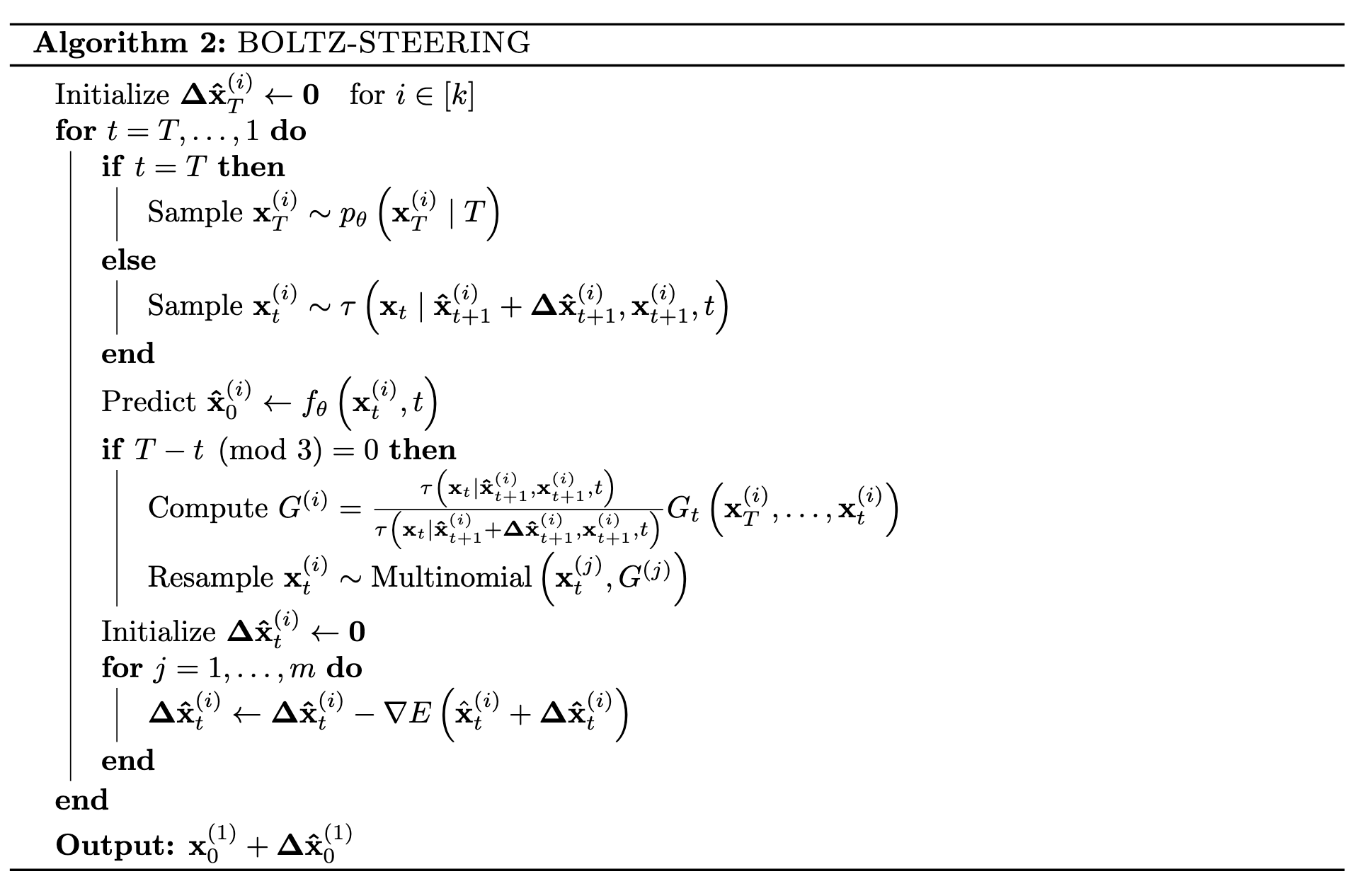 实际应用中,每个时间步都引入引导操作,但仅每隔3个时间步进行一次重采样,以确保足够的探索性。完整的Boltz-steering算法详见算法2。