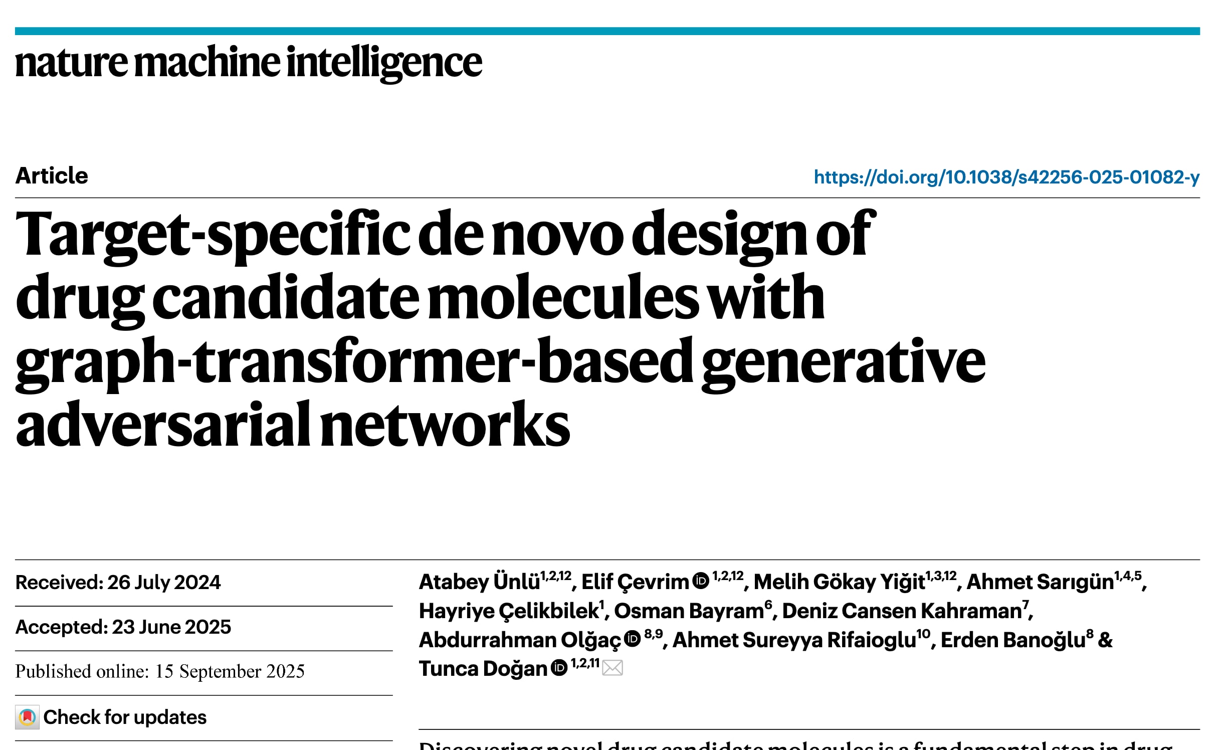 NMI | DrugGEN: 基于graph-transformer生成对抗网络的靶点特异性药物候选分子从头设计