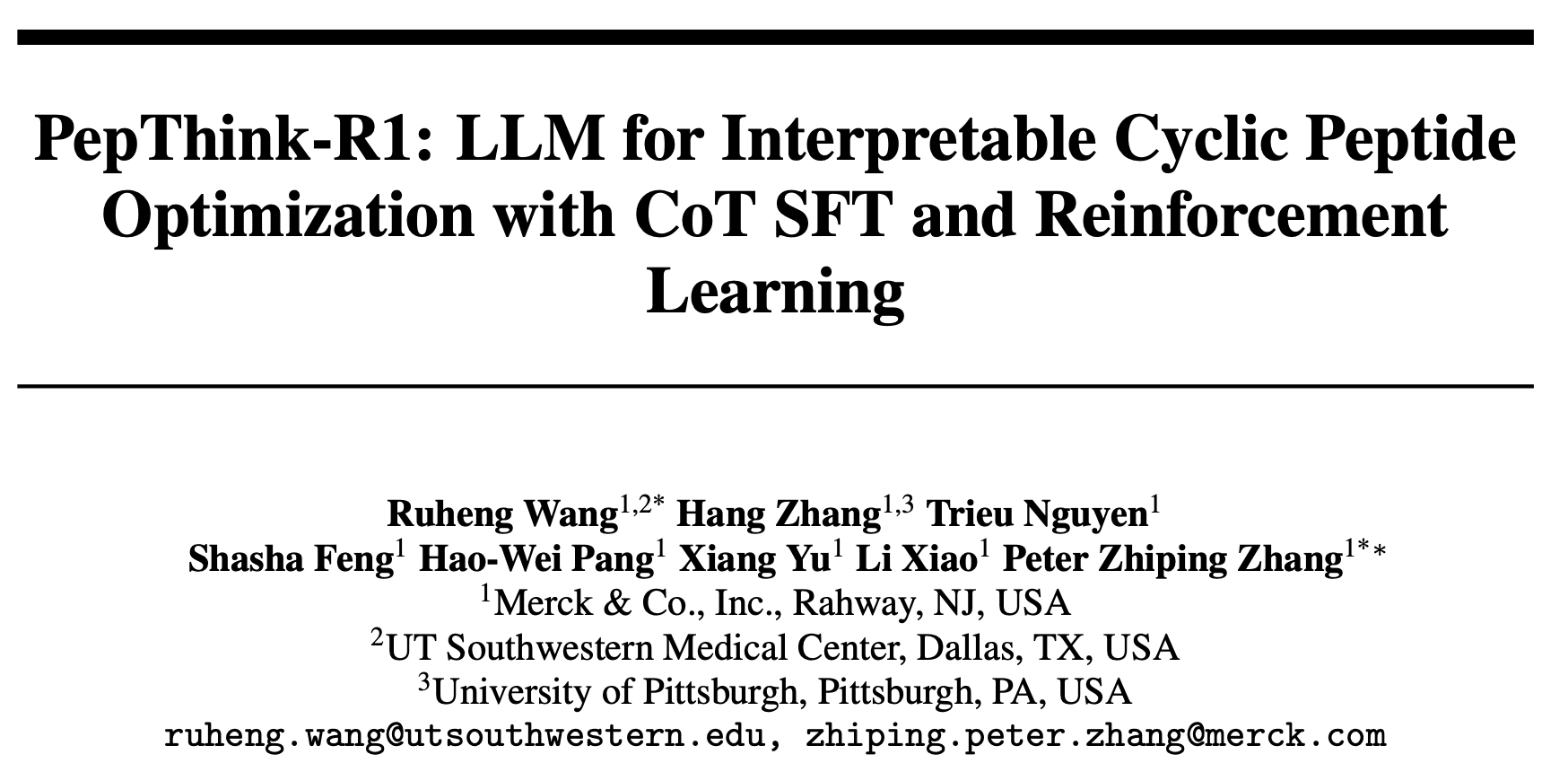 arXiv 2025 | PepThink-R1: 基于 LLM 的可解释环肽优化框架,结合 CoT 微调与强化学习