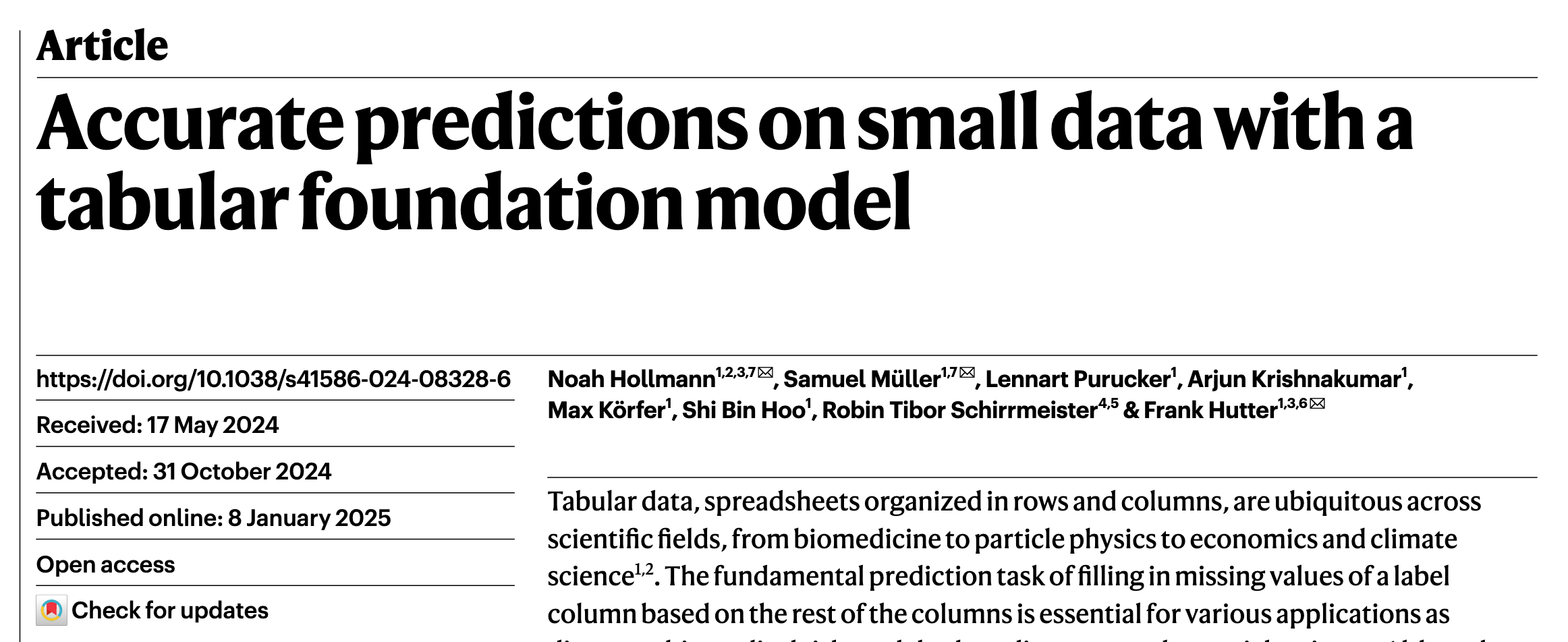 Nature 2025 | TabPFN: 利用表格基础模型在小数据上的精确预测