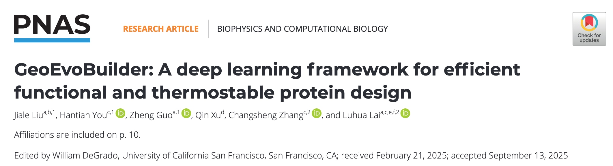 PNAS 2025 | GeoEvoBuilder: 一种用于高效功能性与热稳定性蛋白设计的深度学习框架