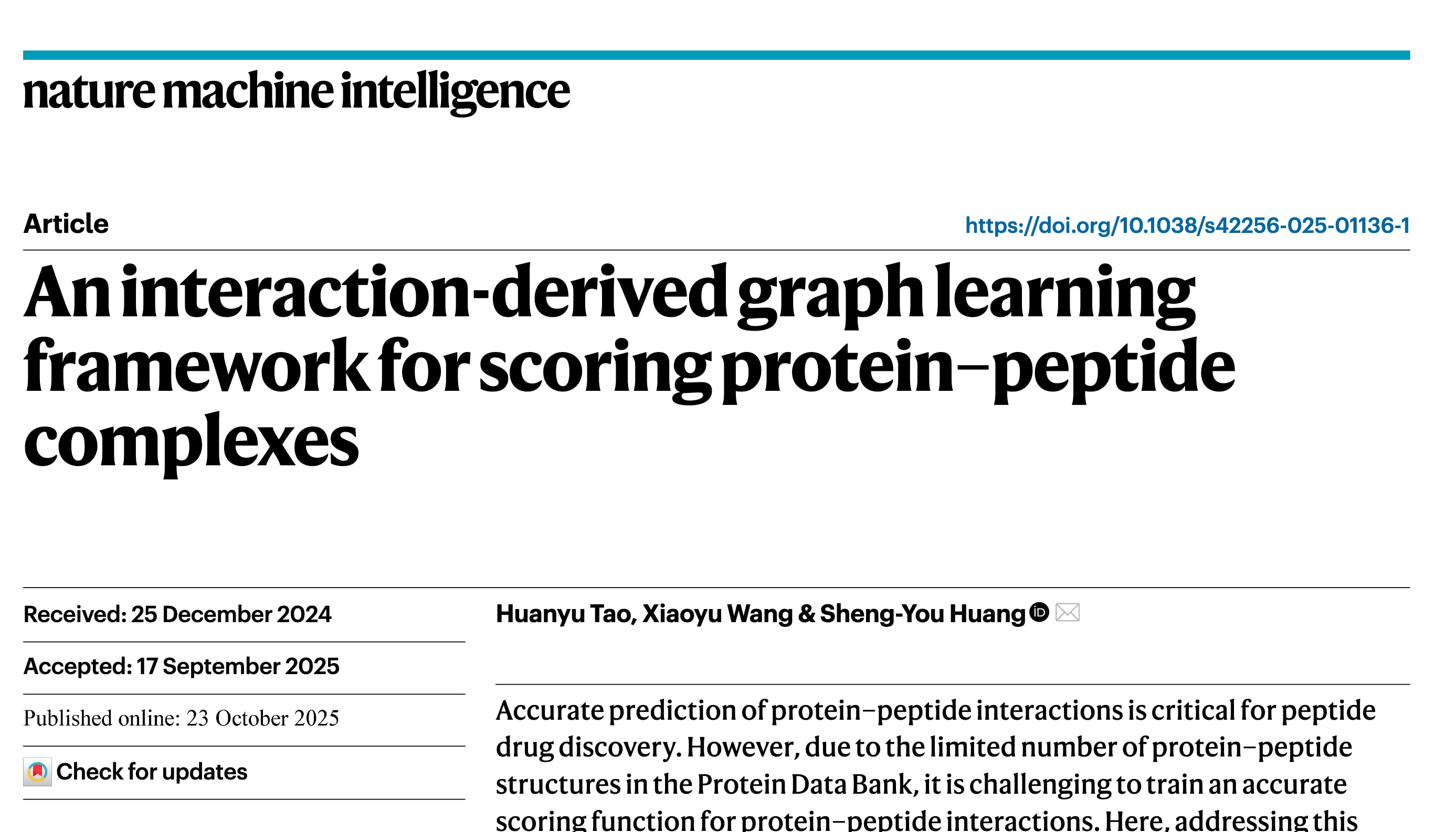 NMI 2025 | GraphPep: 一种基于相互作用图学习的蛋白质–肽复合物评分框架