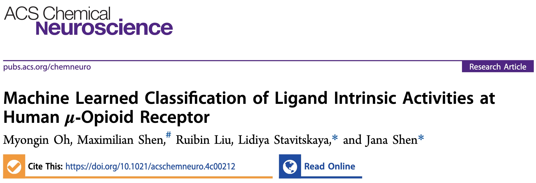ACS Chem. Neurosci. 2024 | 机器学习分类人源μ-阿片受体配体的内在活性