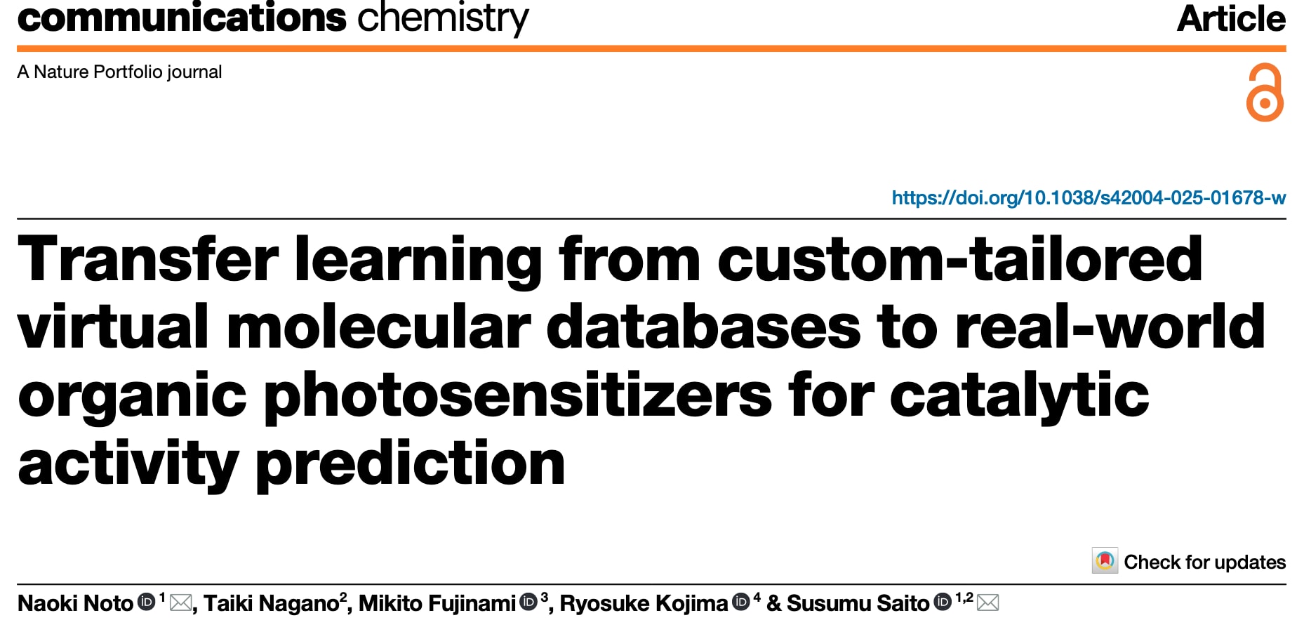 Commun. Chem. 2025 | 从定制化虚拟分子数据库到真实有机光敏剂的迁移学习:催化活性预测研究