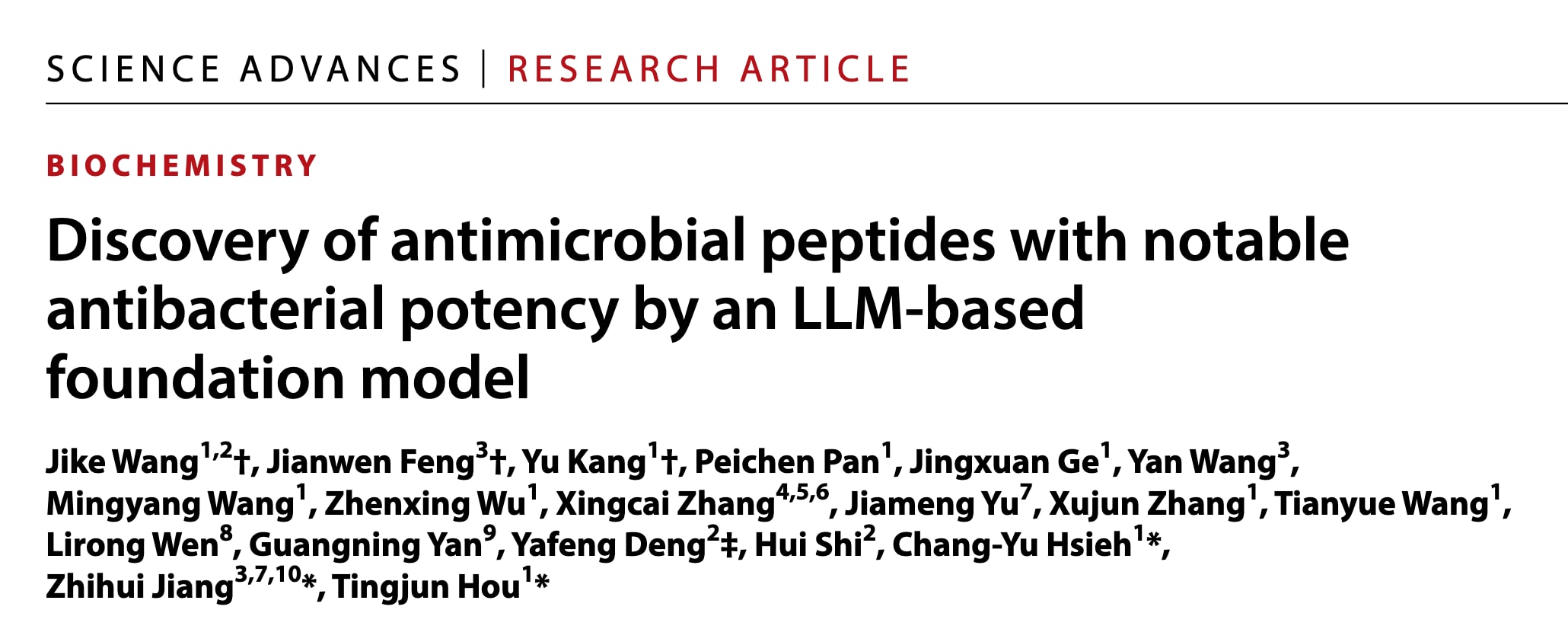 大型语言模型(Large Language Models,LLMs)在化学与生物医学研究领域展现出卓越的进步,已成为可广泛应用于多种任务的通用基础模型。研究者提出了一种名为AMP-Designer的基于LLM的方法,用于快速设计具备特定性质的抗菌肽(Antimicrobial Peptides,AMPs)。在仅11天内,AMP-Designer成功实现了18种具有广谱抗革兰氏阴性菌活性的抗菌肽的从头设计。体外实验验证显示,其成功率高达94.4%,其中两种候选肽表现出优异的抗菌效力、极低的溶血毒性、在人体血浆中的高稳定性及较低的耐药性诱导风险,并在小鼠肺部感染模型中显著降低了细菌负荷。整个从设计到实验验证的过程仅耗时48天。