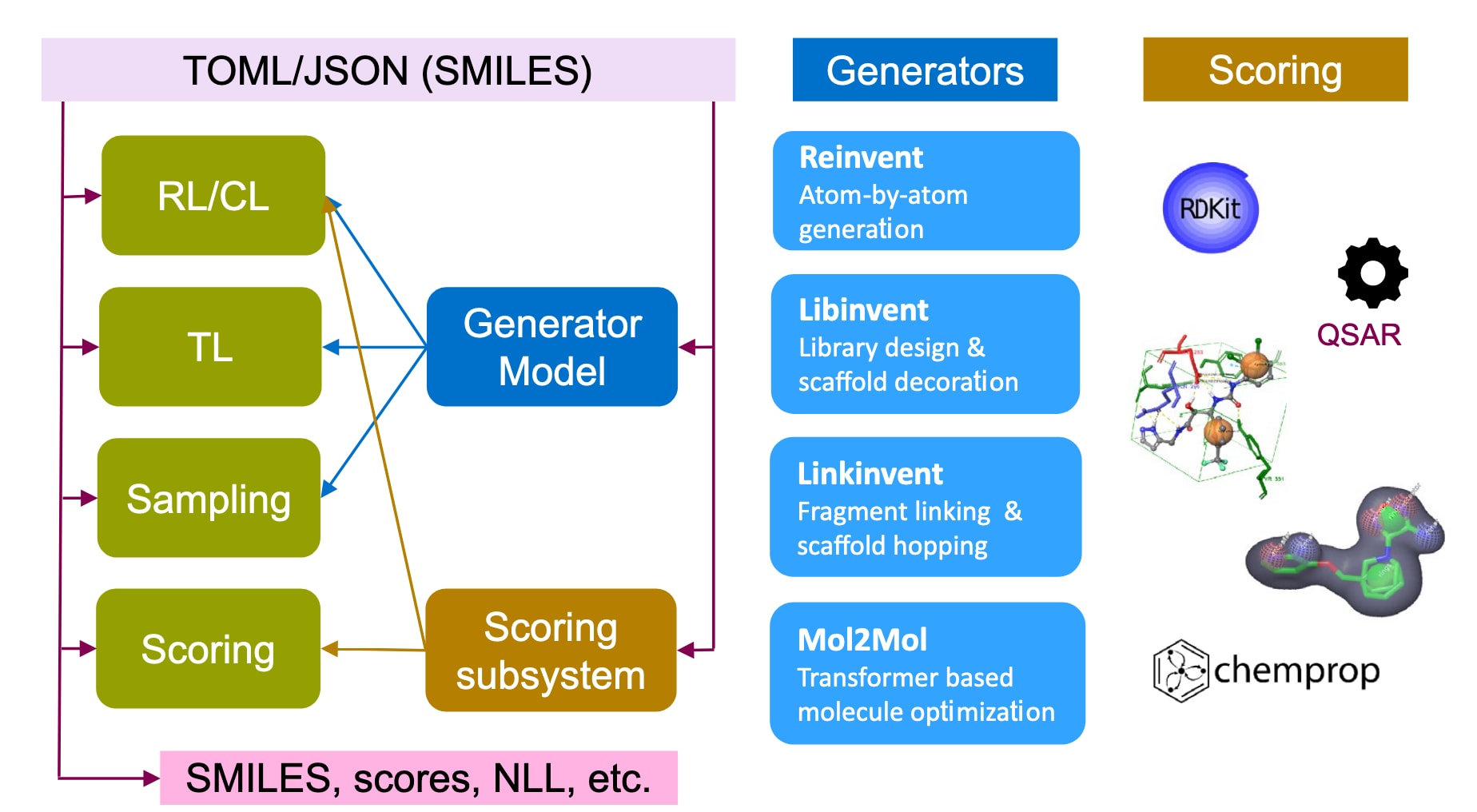 该研究概述了软件及其整体设计,并详细讨论了相关算法及其应用。REINVENT 4以命令行工具的形式提供,用户可通过TOML或JSON格式的配置文件进行控制。该发布旨在为AI驱动的分子生成提供常用算法的参考实现,同时也希望构建一个用于教育和未来创新的分子设计框架。