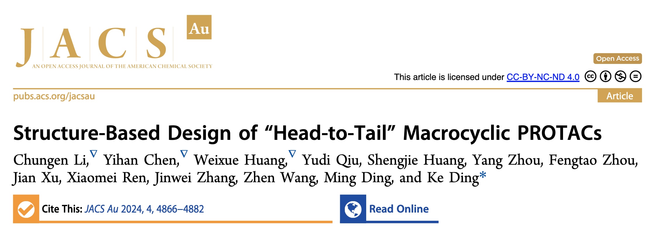 JACS Au 2024 | 基于结构的“首尾相连”大环PROTACs设计