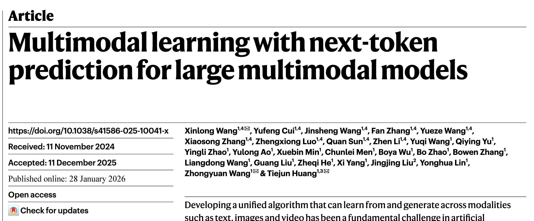 Nature 2026 | Emu3: 采用下一词预测的大规模多模态模型的多模态学习