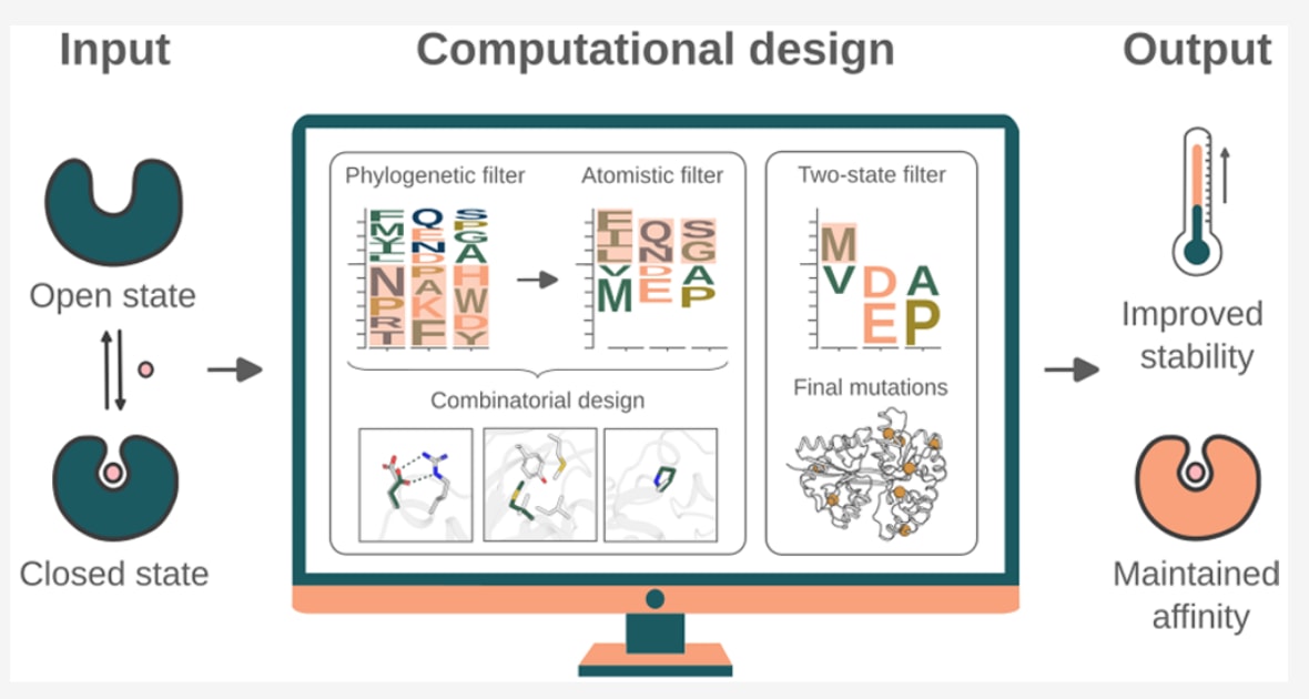 动态蛋白质的功能由其不同构象状态的稳定性以及分隔这些状态的能垒所决定。对于大多数动态蛋白而言,这些能垒的分子层面细节尚不清楚,这意味着现有蛋白设计方法在不破坏活性的前提下引入有益突变方面存在根本性的限制。基于此,研究提出一种假设,即设计能够同时兼容结构上显著不同的平衡构象的突变,可能实现更可靠的稳定性设计。