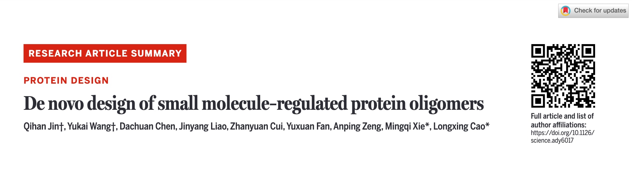 Science 2026 | 小分子调控的蛋白质寡聚体的从头设计