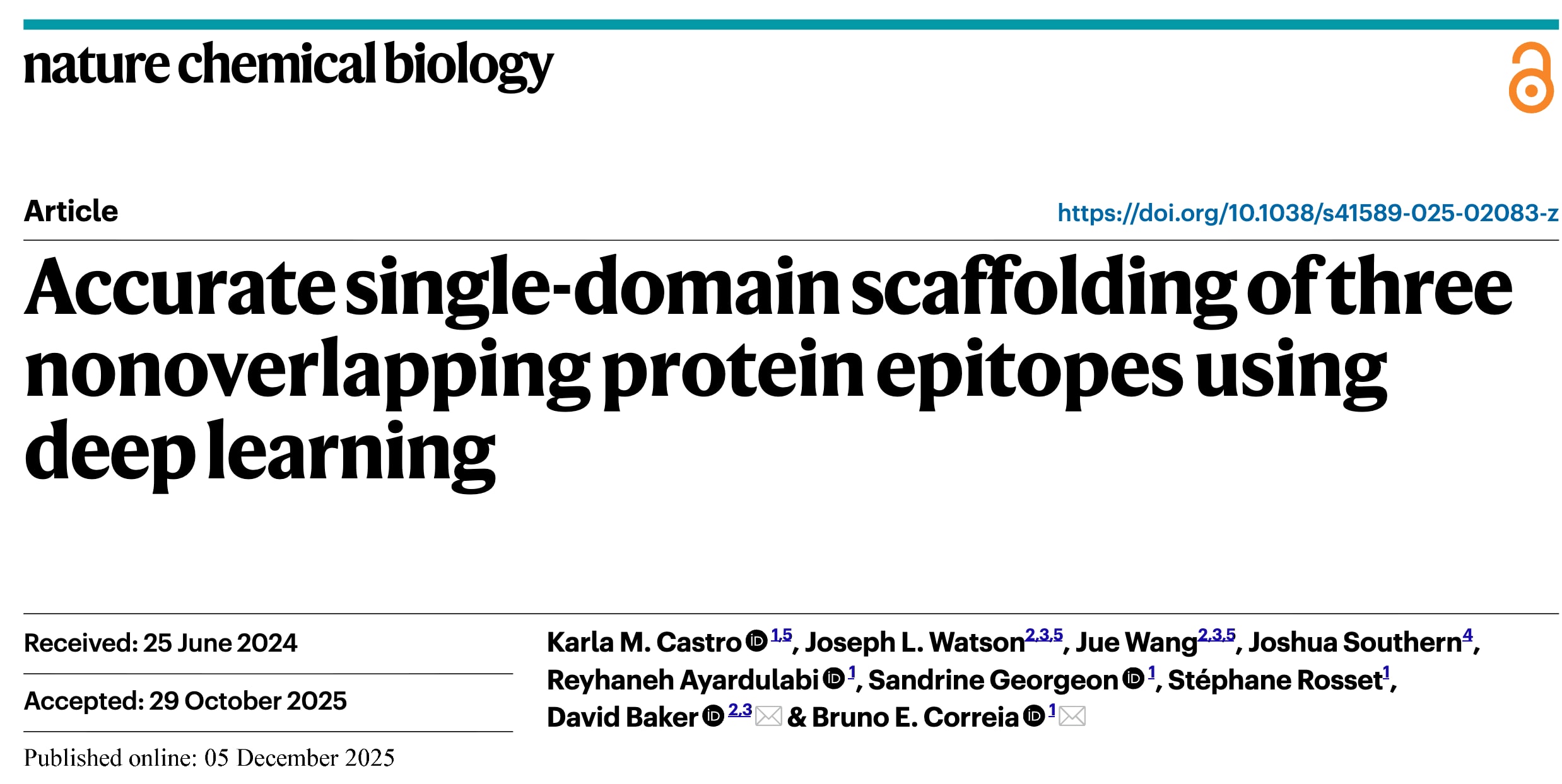 Nat. Chem. Biol. 2025 | 利用深度学习对三个不重叠的蛋白质表位进行精确的单域支架构建