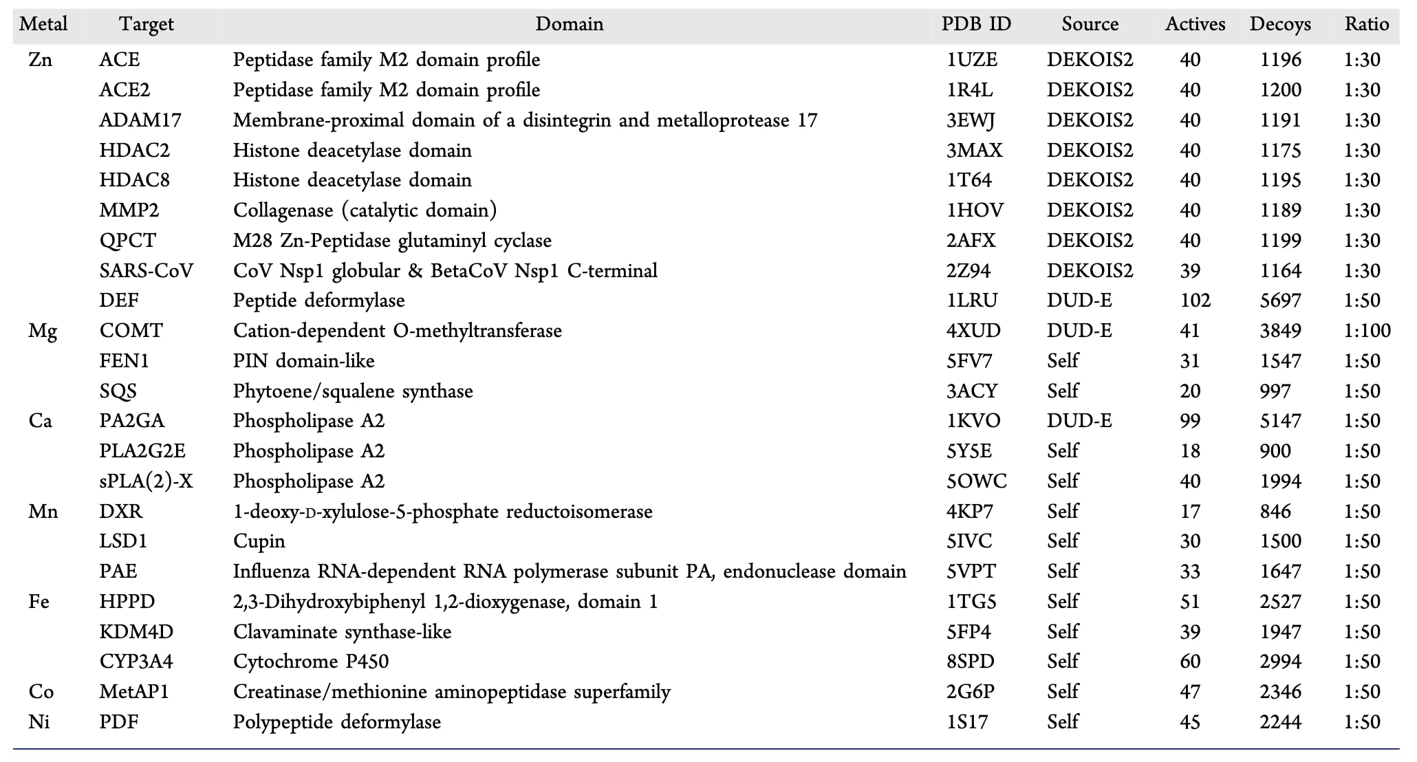 表1|金属蛋白虚拟筛选数据集概览
