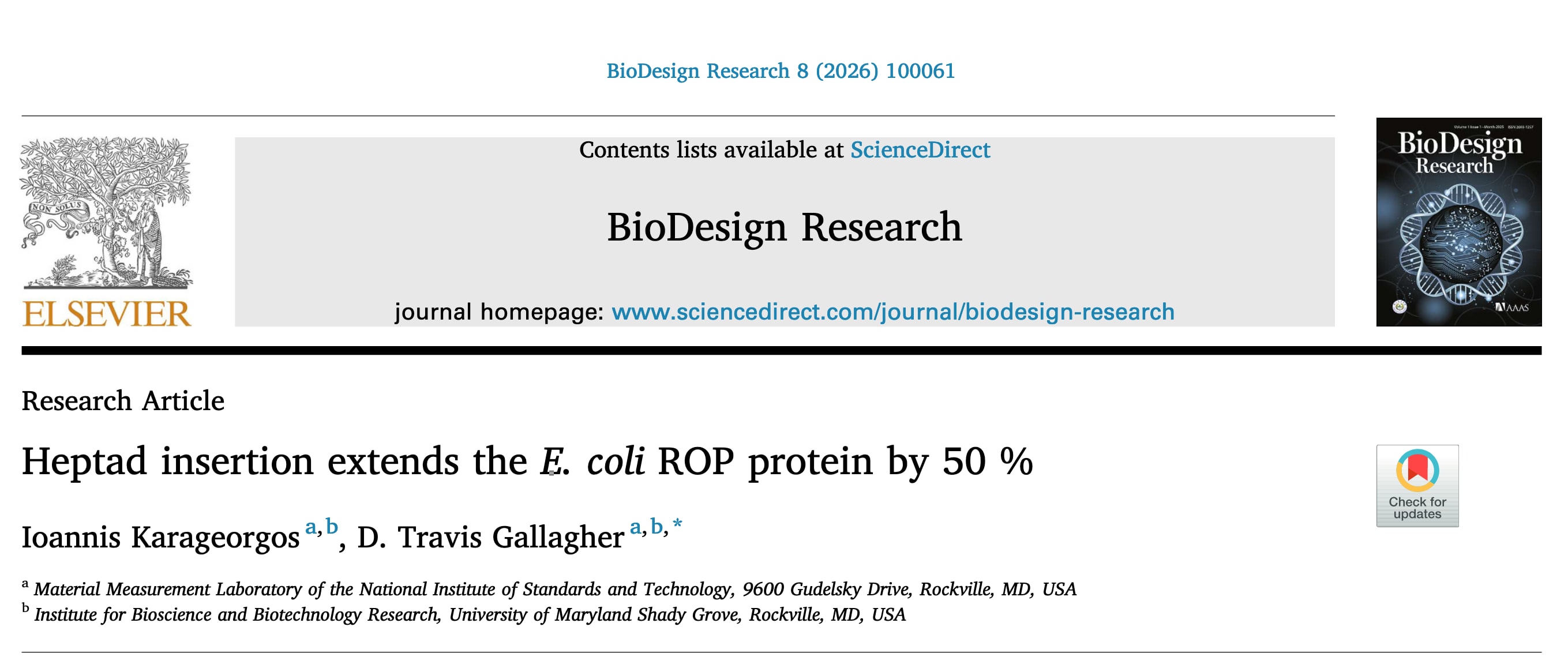 Karageorgos, I.; Gallagher, D. T. Heptad Insertion Extends the E. Coli ROP Protein by 50 %. BioDesign Research 2026, 8 (1), 100061. https://doi.org/10.1016/j.bidere.2025.100061.