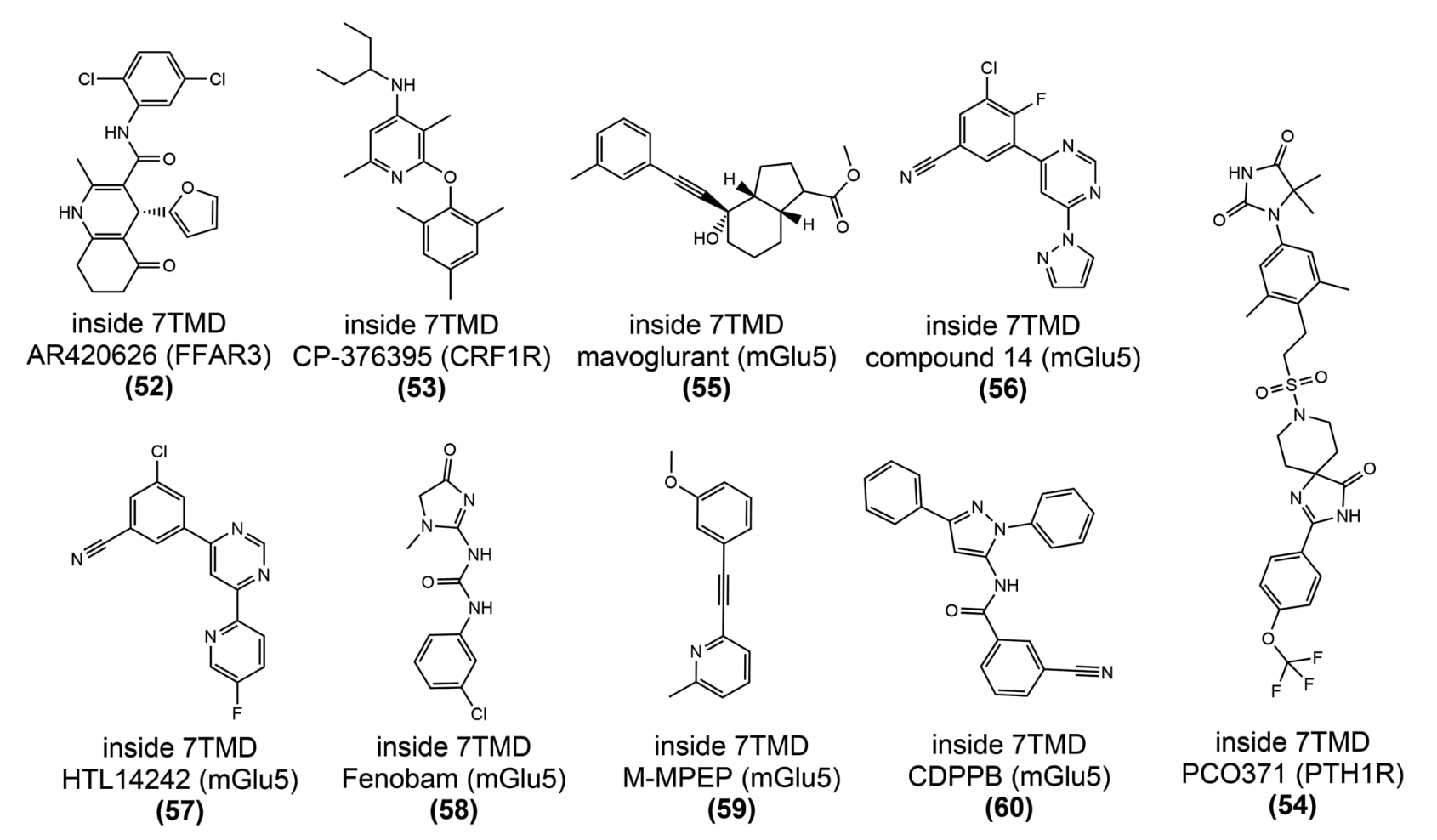 - 7TMD内部:FFAR3–AR420626、CRF1R–CP-376395、mGluR5–mavoglurant、mGluR5–compound 14、mGluR5–HTL14242、mGluR5–Fenobam、mGluR5–M-MPEP与PTH1R–PCO371结构