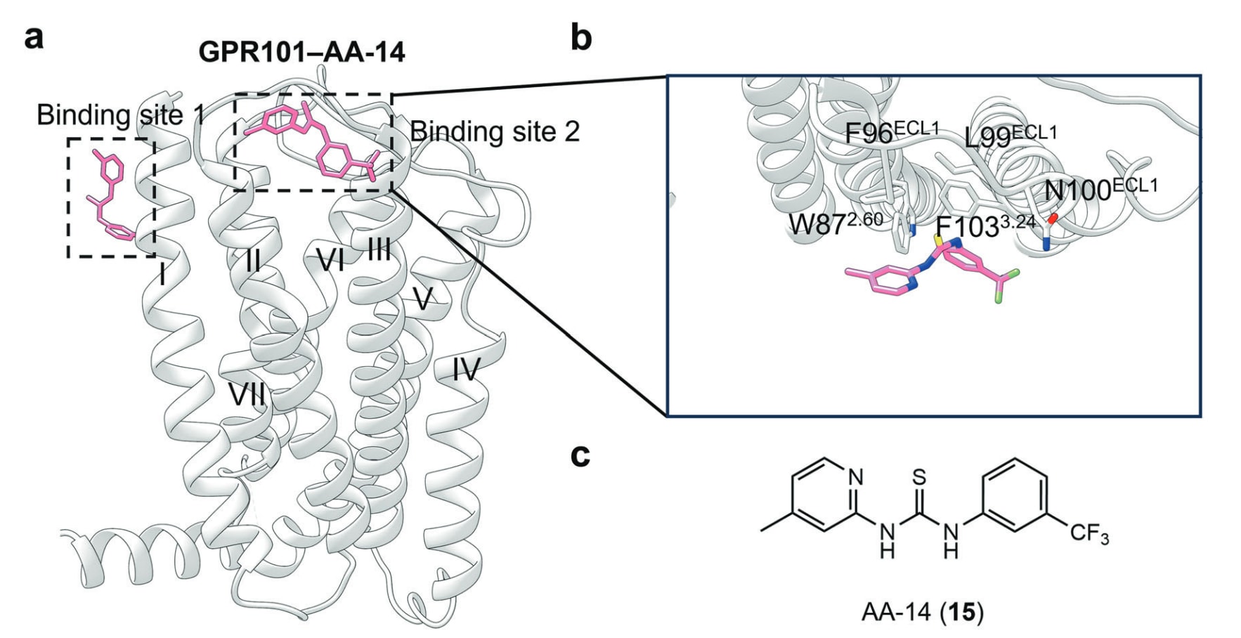 - 7TMD外侧(TM I–II):GPR101−AA-14结构